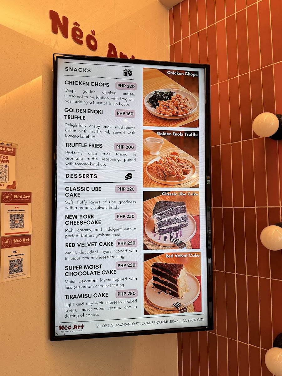 Welcome to NEO ART CAFE, a vibrant haven nestled in Quezon City where creativity meets comfort. This unique spot is not just a café but a fusion of toy collection, DIY art studio, and a cozy retreat. Guests can indulge in an extensive menu featuring delights like the Neo Signature Pasta, infused with rich Asian flavors, or the decadent truffle pasta, perfect for a comforting meal. Coffee lovers can revel in the warmth of their salted caramel latte or other delightful brews.